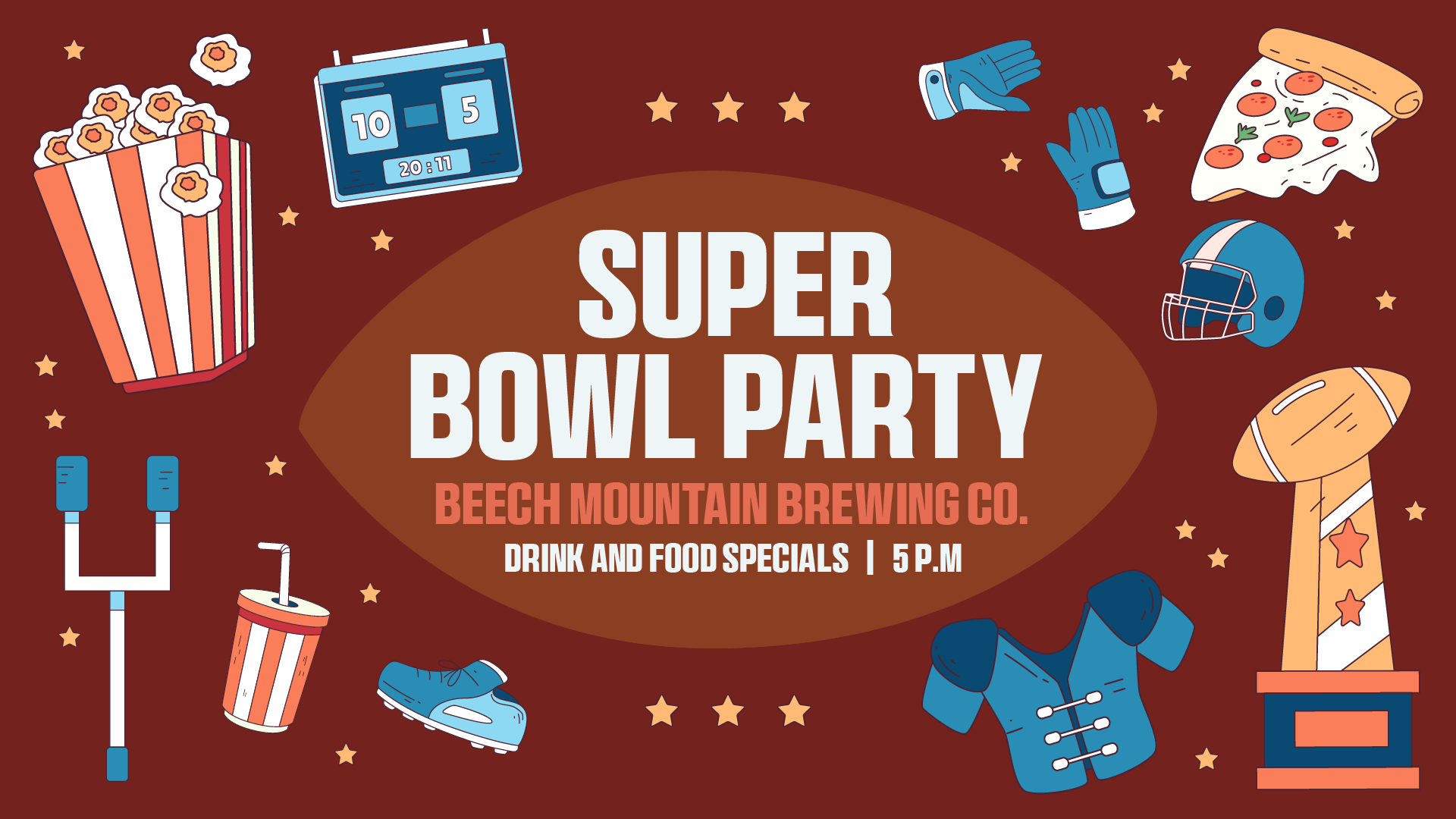 Join us Sunday, Februrary 8th in the Beech Mountain Brewing Company Taproom and Grill for our Super Bowl event. Starting at 5:00 p.m., we will have a special food and drinks menu to celebrate this American tradition.